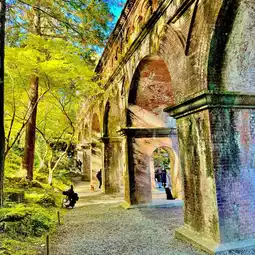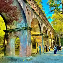 The aqueduct bridge of Lake Biwa Canal in the grounds of Nanzenji Temple is 93.2m long and about 9m high, and is made of bricks with a distinctive arched pier ✿゚❀.(*´▽`*)❀.゚✿