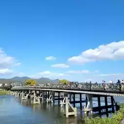 ✨️Togetsu-kyo 渡月橋 ✨️ is a wooden bridge in Arashiyama, Kyoto. Although it is a small bridge, it boasts a long history and tradition. In December, during the 'Arashiyama Hanatoro (嵐山花灯路)' event, where it is lit up with flowers, the lights of the 'Andon (行灯)', a Japanese lighting device used since ancient times, shine on it, creating a fantastic atmosphere.