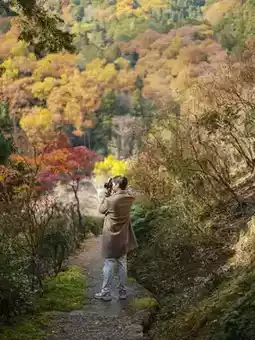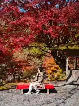 The highlighted photo spots here include the view of the train tracks where many people set up their cameras to wait for the train to pass through the red leaf tunnel, the peaceful pavilion with windows shaped like leaves, looking overlapping the beautiful view, the stairs and bridges in the garden surrounded by trees. If you are coming to visit during the autumn leaves season, I recommend this place. When I came, I booked a time slot at Rurikoin, left the time slot, and continued on to this place. You will get to see quite a few highlights of this area.