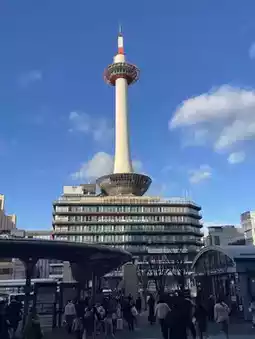 Kyoto Tower is the tallest tower in Kyoto, 328 feet high, and is a landmark of Kyoto. Inside, there is a beautiful 360-degree viewpoint of the city, overlooking the entire city of Kyoto. The shape and overall color of the tower are designed to resemble traditional Japanese candles, with a structure that can withstand earthquakes and large typhoons.