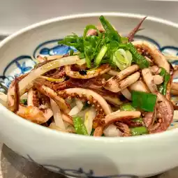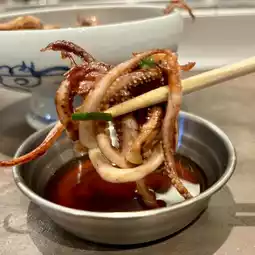 Tender squid tentacles with a rich sweetness and a small amount of vegetables such as bean sprouts, served with ponzu sauce.