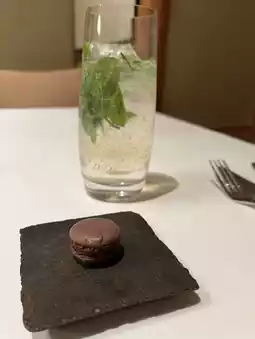 Chocolate macarons with foie gras sauce