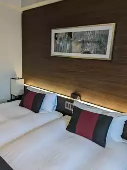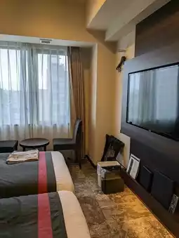 The rooms are spacious, with a calm, modern interior, stylish and relaxing, the beds are comfortable, and the TV screen is large so it's very easy to see.