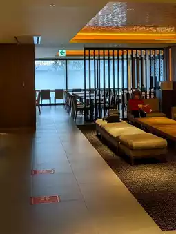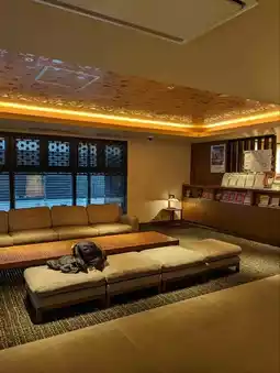 The lobby is spacious and has a high ceiling, and the downlights are modern, making this a wonderful hotel with a beautiful Japanese space.