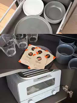 It has three double-sized beds, a sofa, and a kitchen, so it is spacious.
