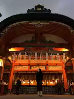 This is the first time to visit the Taisha Shrine at night, the feeling of day and night is different, it turns out that there are many people like us at night to see, a little regret not wearing a kimono to take pictures📸. But it was already a good experience.