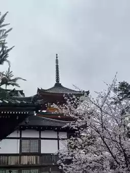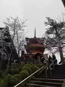 Kiyomizu Dera Temple in Kyoto, one of Japan's world heritage sites. With its beautiful red buildings, contrasting with the white and pink cherry blossoms that bloom in early April, many tourists flock here to take impressive photos (even though it was raining a little on the day we arrived). In addition, there are many restaurants and dessert shops along the way for us to choose from, including cute souvenirs. 🥰