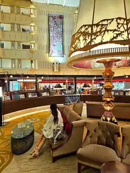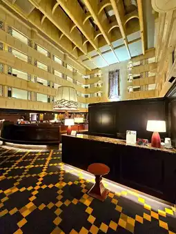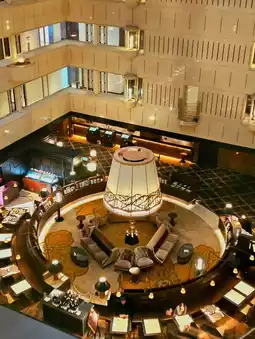 A nostalgic hotel with impressive large lamps✨️