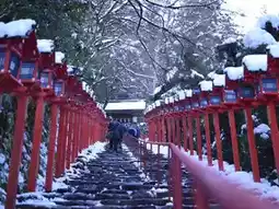 Kifune Shrine in Kyoto is a beautiful shrine in itself, but the combination of illuminated autumn leaves and snow-covered stairs is particularly breathtaking. You can also feel the long history of Kyoto. The god of water is enshrined here, and you can even try fortune-telling by water.