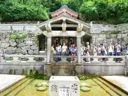 Otowa Waterfall is an artificial waterfall located within the grounds of Kiyomizu Temple or Kiyomizu-dera Temple in Kyoto Prefecture. Three streams flow down from the rocks above the waterfall. Each stream of water that flows down can grant different wishes. It is said that stream 1. Good luck in studies, stream 2. Good luck in love, stream 3. Good luck in health.