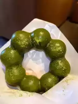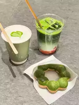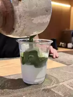 This is a green tea cafe located in the Sannezaka area, a walking street to Kiyomizu Temple, Kyoto Prefecture, Japan. The shop sells green tea drinks, Hojicha tea, and ice cream as a topping. The dessert menu is green tea donuts. There are also powdered teas to choose from as souvenirs to take home.