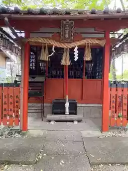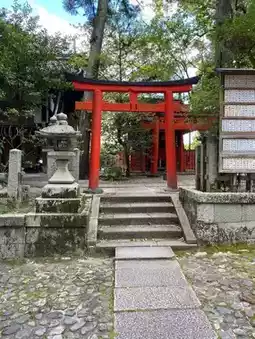 This is a sub-shrine in the grounds of Okazaki Shrine, famous for its rabbits. It was originally enshrined at Sento Imperial Palace, but it burned down and was moved here. The red torii gate stood out against the greenery. It is the god of prosperity in business.