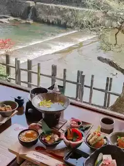 This restaurant in Arashiyama is the ideal spot for lunch! They offer a seasonal Japanese hotpot menu set, and you have the option to enjoy either a garden or river view while dining. 🍱🍚🍜