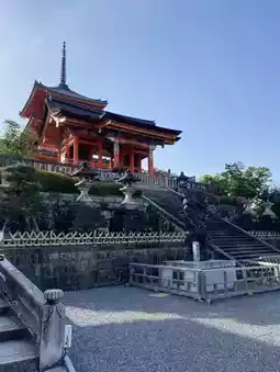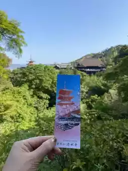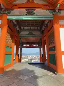 It is a three-story pagoda with brilliant colors. You can see the cityscape of Kyoto not only from a distance, but also if you go close to the tower and the west gate. A little bit of trivia, the background of the illustration on the admission ticket for Kiyomizu-dera changes with the seasons. In May, it was cherry blossoms.