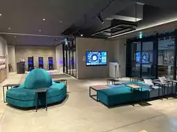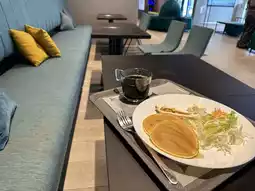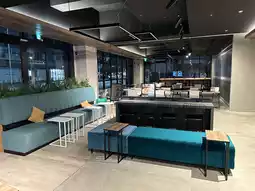 There is a cafe open in the shared space at the entrance, and it is a simple and spacious space.