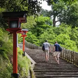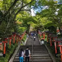 Kurama Temple is quiet with few visitors, but it really involves climbing a mountain. There are towering sacred trees and various staircases and slopes to ascend, which take at least 30 minutes to walk through. Alternatively, you can choose to pay for a cable car ride up, but you still have to walk a bit to see everything.
