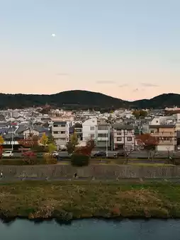 Highly recommend the top-floor suite with a balcony, overlooking the river from a high vantage point, watching the incessant traffic and the Kamo River flowing quietly.