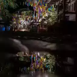 It's happening again this year. Kifune Shrine's Tanabata bamboo decorations were lit up. This photo was taken on July 15th, the first day of the event. There were also lots of tanzaku decorations on display, which was lovely. ☺️It was raining heavily that day, but the occasional breaks created beautiful reflections, so I took this photo. 😊I love how rain allows me to capture scenery I wouldn't normally be able to capture. ☺️┈┈┈┈┈┈┈┈┈┈📍Spot: Kifune Shrine Address: 180 Kurama Kifune-cho, Sakyo-ku, Kyoto City, Kyoto Prefecture 601-1112 Visiting Hours: 6:00 AM - 8:00 PM. (During the illumination period) Light-up period: July 1st to August 15th. Parking. Paid parking available. "800 yen for 2 hours." ┈┈┈┈┈┈┈┈┈┈┈ #Kifune Shrine #Tanabata #Kansai outing spot #Kansai date #Tanabata date #Kyoto