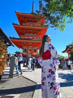 It's a charming atmosphere with Kyoto-style shops lined up.