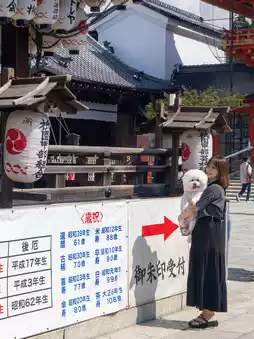 Yasaka Shrine in Kyoto allows pets. Komainu are generally allowed. There are conditions, so check the website of each shrine. At Yasaka Shrine, you can only bring pets if they are held or in a cage. Placing them on the ground is not allowed. At Utsukushigozensha Shrine inside Yasaka Shrine, there is a beauty water. It seems that you will receive good luck just by soaking the area of concern in the water. It is not potable water, so you cannot drink it. Please look for it when you go to Yasaka Shrine 🤭┈┈┈┈┈┈┈┈┈┈┈📍Name of the spot: Yasaka Shrine Address: 625 Gion-cho Kitagawa, Higashiyama-ku, Kyoto City, Kyoto Prefecture Parking lot. There is a paid parking lot 🐶. Visiting hours when you can be accompanied: 24 hours Models: Haruka-san and Komugi-chan 🐶┈┈┈┈┈┈┈┈┈┈┈