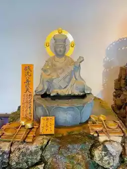It is also famous as the temple that enshrines the statue of Kuya Shonin, from whose mouth a Buddha emerges. The statue is housed on the second floor of the newly opened Reiwakan building to the west of the main hall. Although this temple is compact, it has many spots for bringing good fortune and benefits, such as the "Ichigan-ishi" (one wish stone), which is said to grant one wish, the "Nade-ushi" (rubbing cow), which is said to heal painful or difficult parts of the body when rubbed, and the "Zeniarai Benzaiten" (powerful goddess of war), which is said to improve financial luck, so be sure to check it out!