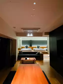 Located in the annex, this spacious, high-quality suite-type room comes with a kitchen. A hideaway-like space that makes you want to invite someone over. A lounge space exclusively for HIDEOUT SUITE guests is available on each floor!!! The lounge, which can also be used by guests, is all-inclusive. All-you-can-drink alcohol and soft drinks are available. Feel free to use it during your stay. TUNE HOTEL