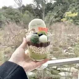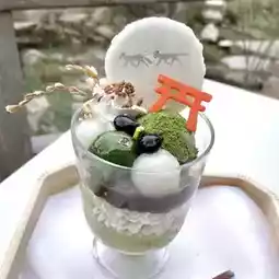 A parfait with Fushimi Inari Taisha as its motif, located inside Fushimi Inari Taisha
