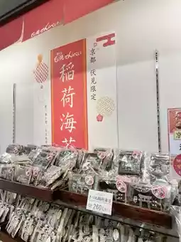I ordered "Inari nori" that is only available at Fushimi Inari and has Fushimi Inari Taisha drawn on it, and "Kushi Nure Okaki Oage-san" that is made on the spot!
