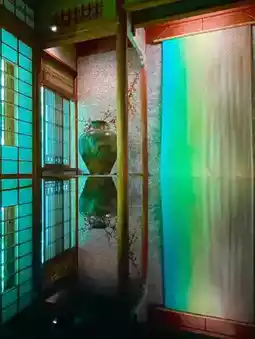 About a 10-minute walk from Togetsukyo Bridge. In the Kameyama area of Arashiyama Park, there is a dyeing art gallery called "Arashiyama Yusaitei".