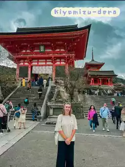 📍 Kiyomizu-dera is one of the most iconic sights in Kyoto. There are bright vermilion buildings and the temple is behind. It provides a wonderful view of the city too!