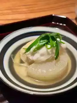 - Shizusuka's oden with daikon radish, tai shinjo, and Hiryuu toast