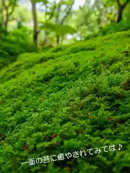 The approach, mountain gate, and inner gate are already covered with moss, building up your sense of expectation.♪ And when you enter, a magnificent moss garden awaits you.♪ Green maples cover your head, creating a beautiful green world.😍