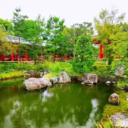 The pond garden on the east side of the main hall is an elegant place where trees, rocks and Sanjusangendo Hall are cleverly integrated.