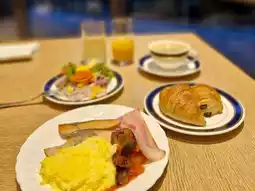 Breakfast is served in the club with limited options, but if you choose to go to the main restaurant, there is an additional charge.
