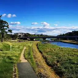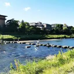 Continue cycling until you reach the Kamo River Delta, where it gets really lively. People are playing in the water, sitting on the stepping stones reading books, or gathering in groups on the grass playing guitars... This spot is also a famous filming location for movies and TV dramas.