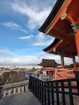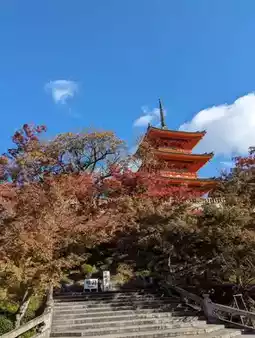 🍂As one of the most representative temples in Kyoto, it is famous for its spectacular Kiyomizu stage. The Kiyomizu Stage is a wooden platform suspended on a cliff without a single nail. It is a national treasure of Japan and looks even more natural when decorated with red maple leaves. Looking out over the city of Kyoto from the Kiyomizu stage, you can forget about any worries you have.