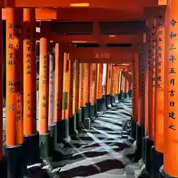 I climbed to the summit of Fushimi Inari Shrine at night, and it was a truly special experience. Walking through the red torii gates in the darkness felt mysteriously different from the daytime. With almost no people around, it was a peaceful communion with nature, and the softly lit path felt surprisingly safe. Upon reaching the summit, the night view of Kyoto spread out before me, and the tranquility and scenery of that moment remain an unforgettable memory.