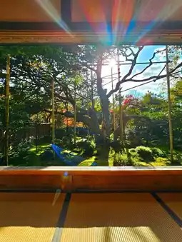 The huge pine branches that fill the garden are powerful, and the sunlight shining through them is fantastic🌫️
