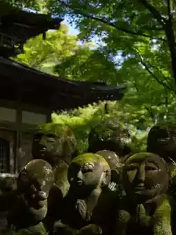 Atago Nenbutsu-ji Temple in Saga, Kyoto, is a unique temple with a row of cute arhat statues. The temple grounds, with over 1,200 expressive stone Buddhas, are a mysterious and soothing space. It is a quiet place surrounded by nature, so it is a perfect spot for a leisurely stroll.