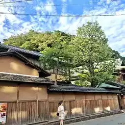 📍 Kinosaki Onsen: A traditional hot spring town where people of all ages stroll and bathe in colorful yukatas amidst the osmanthus trees.