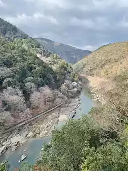 After about 30 minutes in the forest, I followed the path up to a scenic hill overlooking the Katsura River. From the hilltop, I could see boats gracefully drifting down the stream, a scene that felt straight out of a traditional Japanese painting. This spot has long been a beloved area for boating, particularly during the Heian period when it was a popular pastime for the nobility. The pristine water and untouched surroundings make it feel like stepping back in time. For travelers, this view is a quiet reminder of Kyoto’s natural beauty and history.
