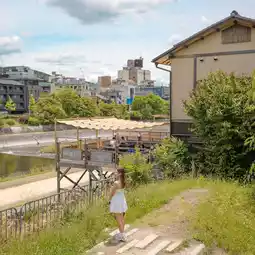 Explore another must-see spot when visiting Kyoto: the Kamo River. This river stretches through the city of Kyoto and is a popular gathering place for both tourists and locals who often stroll along its banks in the evening.