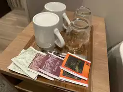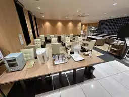 Near the front desk, there is a shared space that is open until midnight, and there is a tourist information corner and a comic corner.