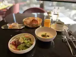 All the tea, coffee, and gourmet bar sweets in the room are free!