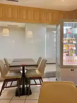 There were many table seats inside the shop.