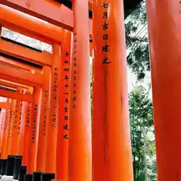 Fushimi Inari Taisha Shrine was built in 711 AD. It is located on the Inari Mountain in Fushimi District, Kyoto City, which is revered as a divine domain. It is the head shrine of about 30,000 Inari shrines in Japan. It has a history of more than 1,300 years and has been revered by the public since ancient times. The largest representative building of the shrine is composed of many torii gates, and the vermilion "Thousand Torii Gates" stretch all the way like a tunnel. Each torii gate is also engraved with the name of the person who "donated" the torii gate.