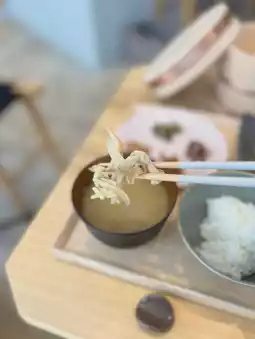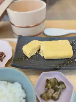 After ordering, I looked at the side dishes displayed in the store, and freshly cooked rice appeared in a rice cooker😍✨✨ The mushroom miso soup with butter was rich and thick🫢 The rolled egg with dashi stock was also delicious🤤 There were about 6 types of side dishes, so you could enjoy a variety of flavors🙌