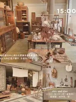 ❸ chic and clanAddress | 8-59 Yamabata Ichimachida-machi, Sakyo-ku, KyotoOpen | 12:00-18:00 (Closed Mondays-Fridays)Access | 4 minutes walk from Shugakuin Station on the Hiei Electric Railway