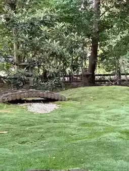 The green garden, overgrown with "carpet moss," represents the scenery of Arashiyama