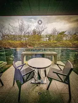 No smoking in the building. (Smoking space available at the front entrance of the hotel)